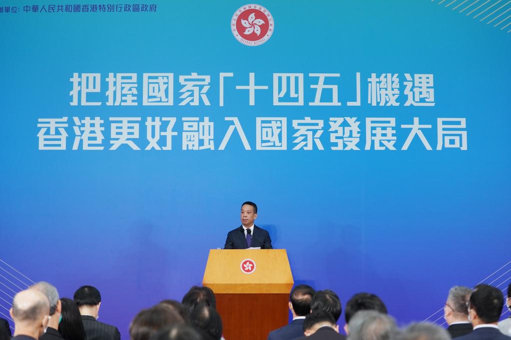 宁吉喆通过视频致辞表示,国家“十四五”期间将为香港发展给予更大支持,相信香港通过不断挖掘新的优势,将在金融服务、数字转型、国际贸易、创新科技 、绿色发展等领域获得更多机遇,实现更大发展。发改委将全力支持香港参与粤港澳大湾区建设和共建“一带一路”,促进香港更好融入国家发展大局。期待香港以“更加积极的姿态拥抱国家‘十四五’规划,成为国内大循环的‘参与者’和国内国际双循环的‘促进者’,抓住更多机遇、发挥更大作用,开创香港发展新局面。”