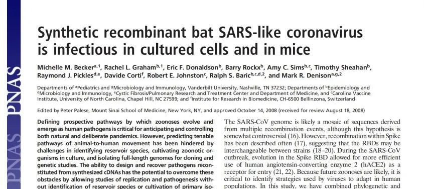 美国2008年已合成SARS样冠状病毒